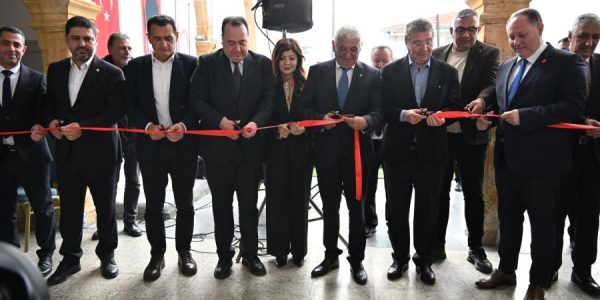 “4. Uluslararası Güzelyurt Sanat Buluşması” kapsamında sanatçıların çalıştayda çizdiği resimlerin yer aldığı sergi Cumhuriyet Meclisi Başkanı Ziya Öztürklerin k...