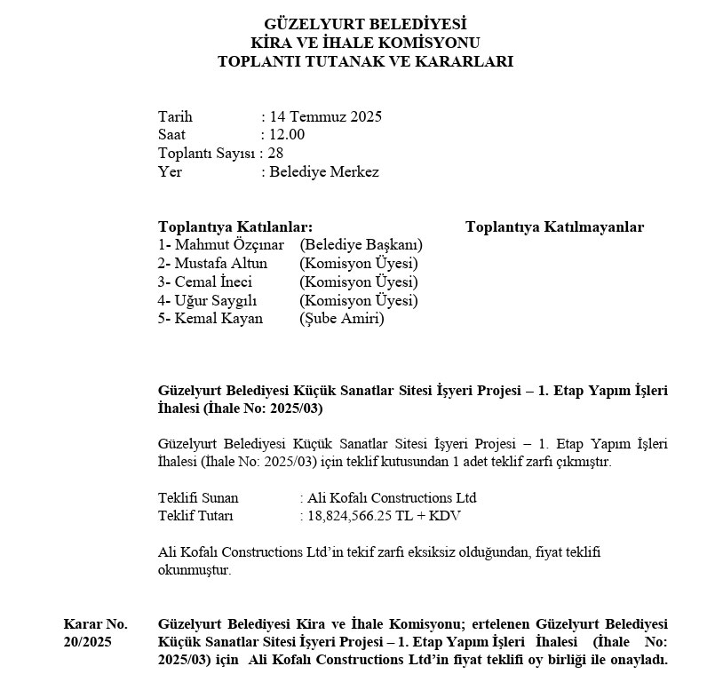 Sonuçlanan İhaleler
